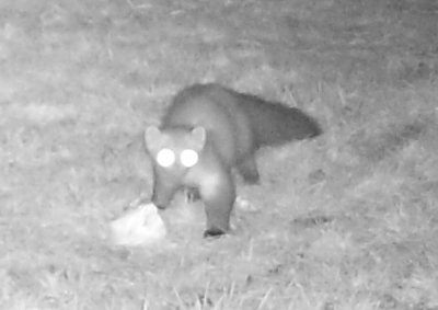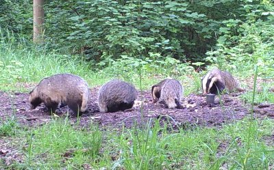 Die hier gezeigten Bilder sind mit einer Wildkamera aufgenommen. Wir hatten sie im Winter 2012/2013 im Garten und von Mai bis September 2013 an einem Futterplatz des zuständigen Jagdpächters im Wald aufgehängt. Die Qualität der Filme ist nicht so gut – da die Kamera festsitzt, ist man auch darauf angewiesen, dass die Tiere kooperativ sind und ins Bild laufen – aber wir konnten ein paar nette Szenen festhalten. Die Schwarz-Weiß-Bilder und -Filme wurden nachts im Infraroten aufgenommen – daher auch die extrem hellen Augen der Tiere, die oft überstrahlen und nicht selten recht unheimlich wirken. Nachts nimmt die Kamera nur Filme von 10 s auf, tagsüber von 30 s.